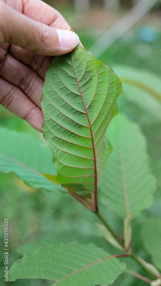 Hand Hold Leaves Leaf Stalk Mitragyna Speciosa Leaf Kratom Plant In Thailand Kratom Is Thai Herbal Which Encourage Health Close Up Stock Photo Adobe Stock